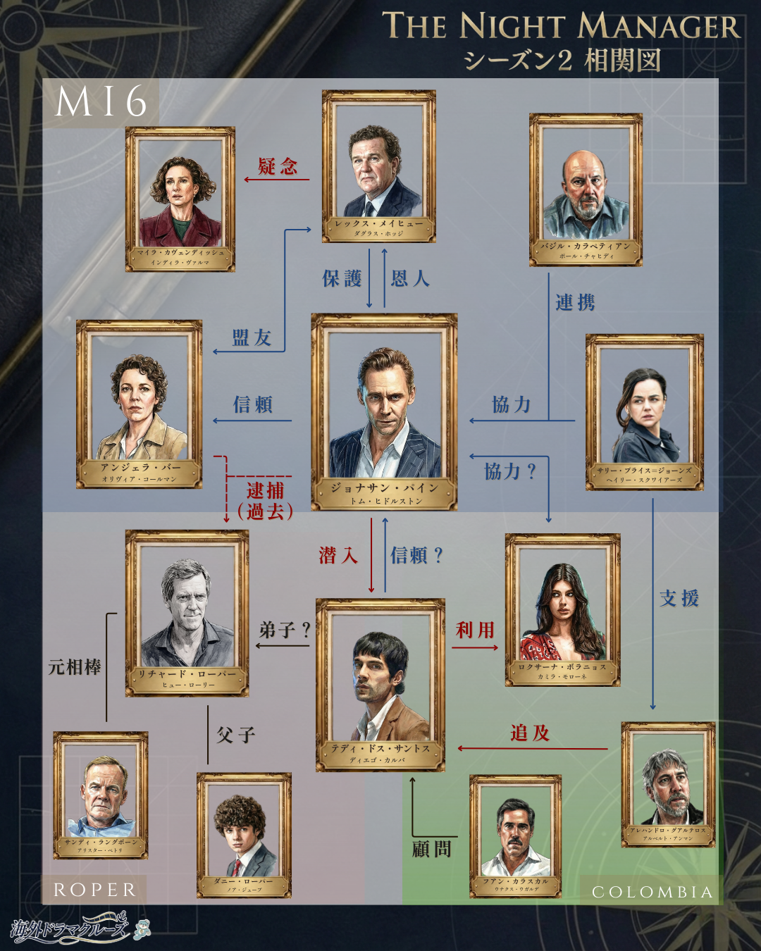 MI6内部さえも信用できない状況下で、パインは組織に無断で動き出します。恩人の死の真相を暴き、新たな巨悪を止めるため、再び偽名を使い、自身の命を賭けた危険な潜入工作を開始。彼は「マシュー・エリス」 を名乗る投資家になりすまし、南米コロンビアの犯罪組織の中枢へと入り込んでいきます。